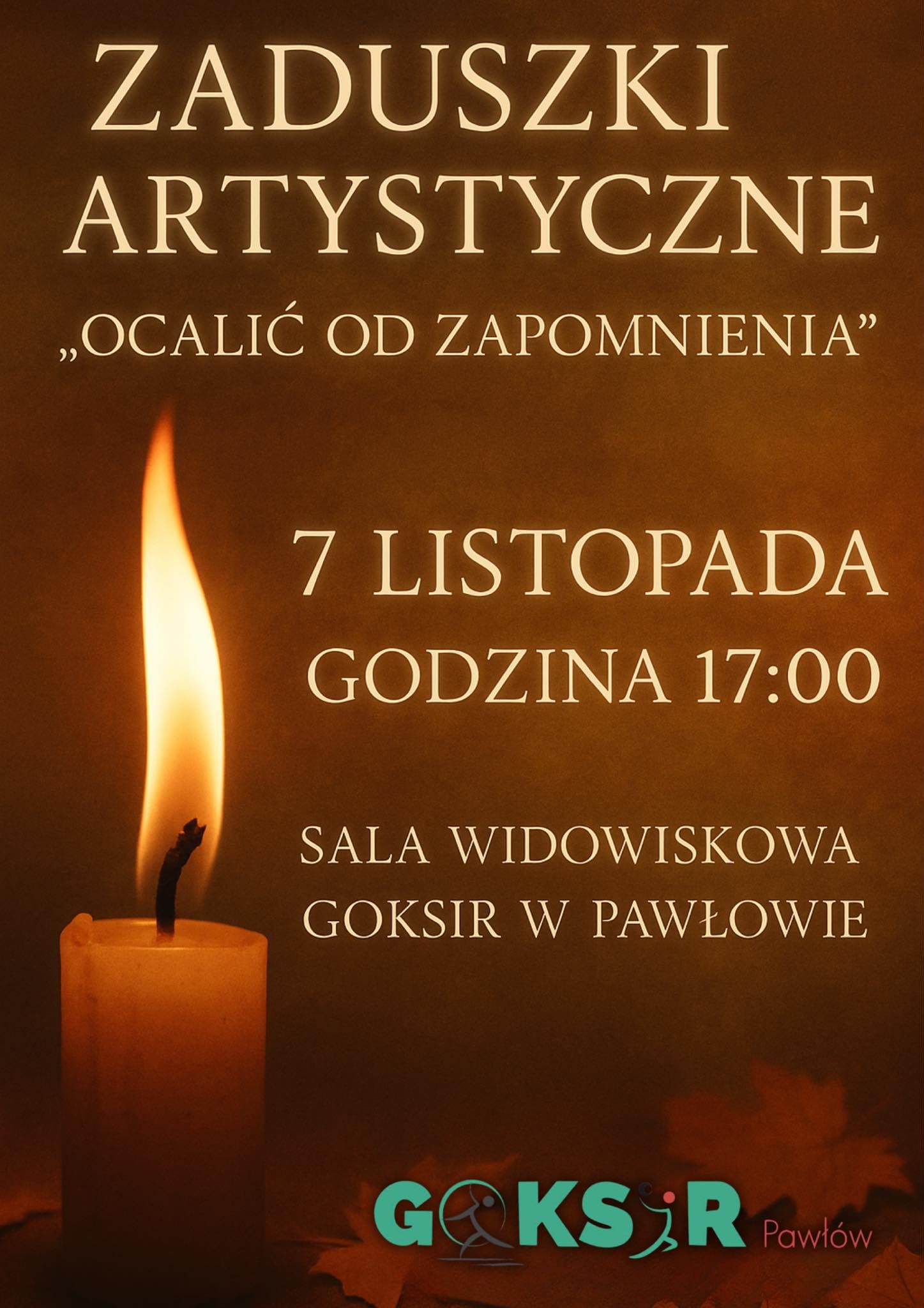 Realizacja dźwięku, techniki sceny oraz wsparcie (akompaniament) podczas Zaduszek Artystycznych „Ocalić od zapomnienia” w Gminnym Ośrodku Kultury, Sportu i Rekreacji w Pawłowie.
